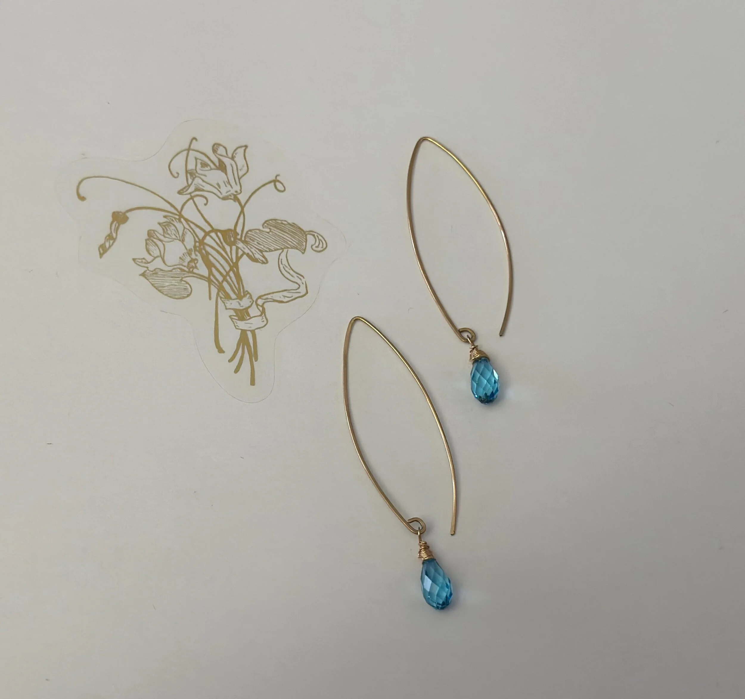 Gold - Gold Filled Rectangle Shape Crystal Quartz Drop Earrings
